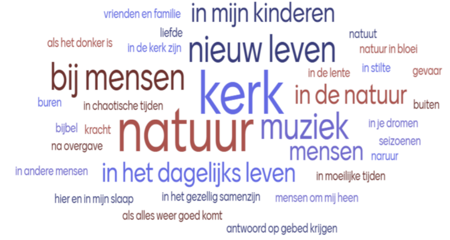 ![]() Meditatief: Op zoek naar God In de jeugddienst van 19 april jl. deed ik met de kinderen het raadspelletje ’Ik zie ik zie wat jij niet ziet’. Het leek me wel passend bij het thema van de dienst ‘Op zoek naar God’. Ik vroeg naar de kleur groen en de kinderen noemden allerlei voorwerpen die ze met groen zagen. Tot mijn verrassing noemden zij niet de mevrouw die groen gekleed duidelijk zichtbaar in de kerkzaal zat. Pas toen we even naast haar gingen staan, viel het kwartje. Het illustreerde voor mij spelenderwijs hoe dichtbij God kan zijn zonder dat we het eigenlijk door hebben. We kunnen van tijd tot tijd verlangen naar Gods grote en duidelijke aanwezigheid en dat begrijp ik bij alle zorgen die we hebben. Maar wonderlijk dichtbij zoekt God ons op in soms ‘gewone’ dingen. Later in de dienst werd aan de kerkgangers gevraagd: Waarin/wanneer zie je God? In de mentimeter werd zichtbaar hoe dichtbij God ervaren wordt. Het geheel laat een mooi en inspirerend palet zien van Gods aanwezigheid die ons raakt, bemoedigt, troost en aanspoort om ons met open ogen en open oren te blijven verwonderen. Het is kostbaar om dit met elkaar te (blijven) delen. Gertjan Robbemond Lees hier de gemeentebrief van deze week |